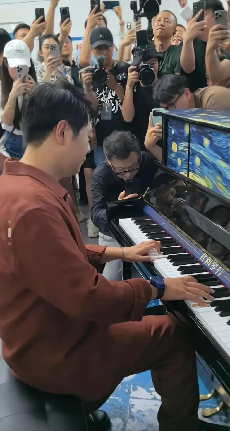 當時,小孩哥正沉浸在自己的音樂世界里,指尖在琴鍵上輕快跳躍,悠揚的旋律在地鐵里回蕩。這時,人群中出現了郎朗的身影。要知道,郎朗可是無數學琴人心中的偶像啊,換做一般人估計早就激動得手抖了,可咱們小孩哥那叫一個穩如泰山,不僅沒有絲毫怯場,甚至都沒有停下來,依舊淡定地繼續彈奏。那自信的小模樣,仿佛在說:“不管遇到誰,我的舞臺我做主!”