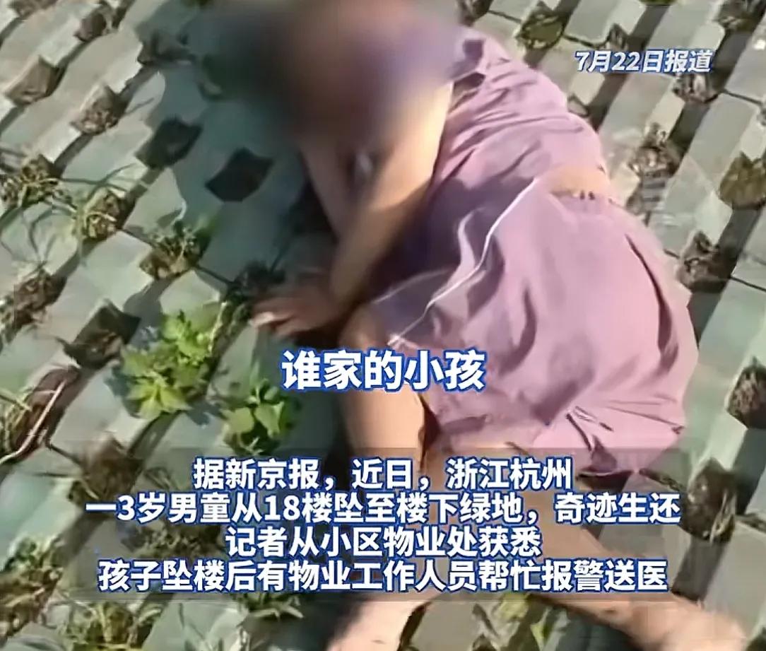 杭州一3歲小孩從18樓窗戶墜落后奇跡生還,而且意識清醒,還知道要“大黃蜂”玩具。這真是命大?。∫沧屓送笈碌模?/p>