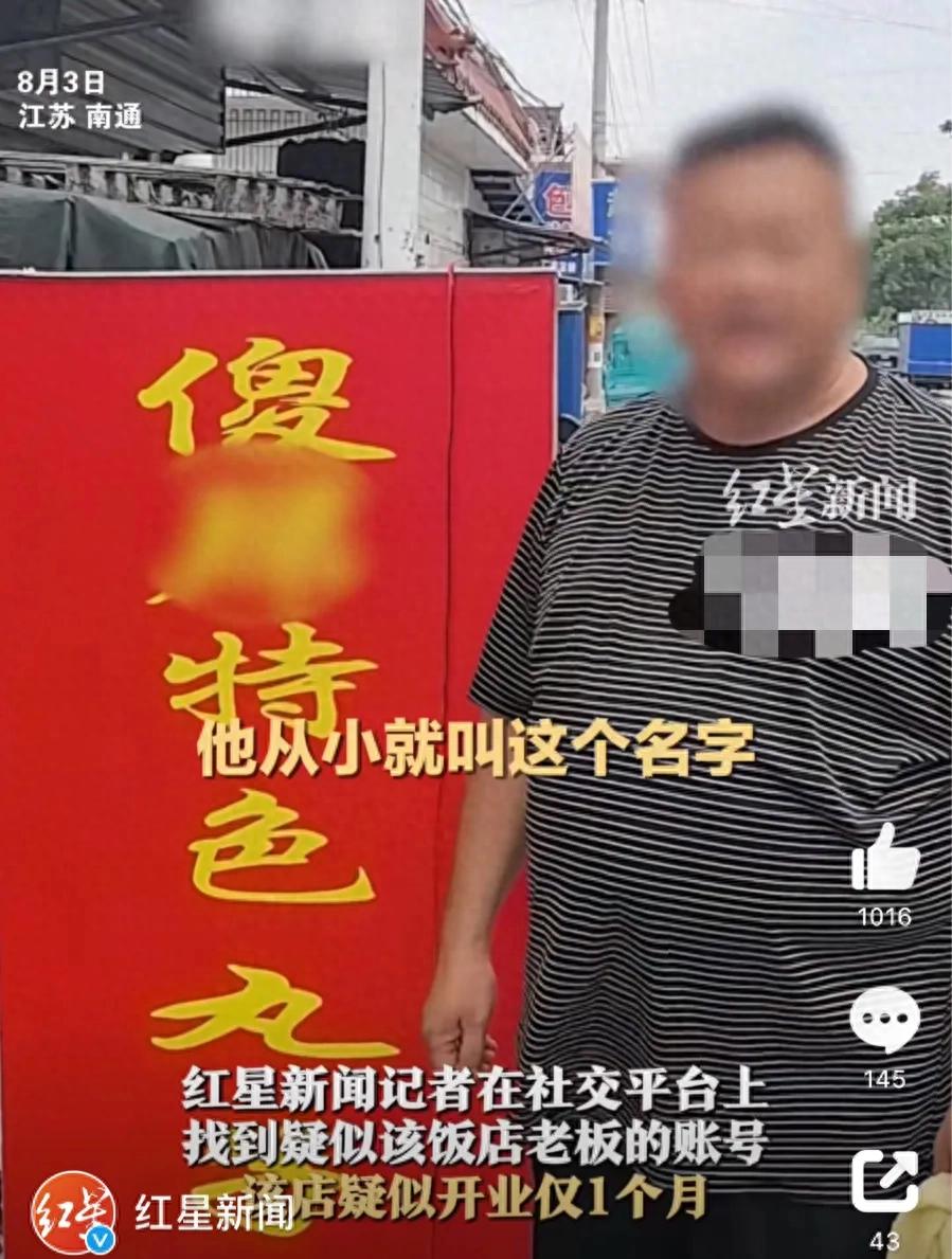 8月3日,江蘇南通。海門區三星鎮某丸子湯店的招牌因為使用臟話當噱頭,被當地網友拍下被指出“辣眼睛”。紅星新聞記者在社交平臺上找到疑似該飯店老板的賬號,該店疑似開業僅1個月。紅星新聞記者從當地鎮政府獲悉,8月3日他們已經趕到店家與店主進行了溝通,目前他已經認識到該綽號不雅,將盡快做出整改,更換店招。