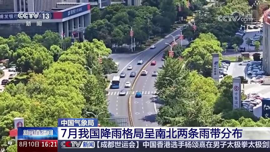 7月我國降雨格局呈南北兩條雨帶分布。