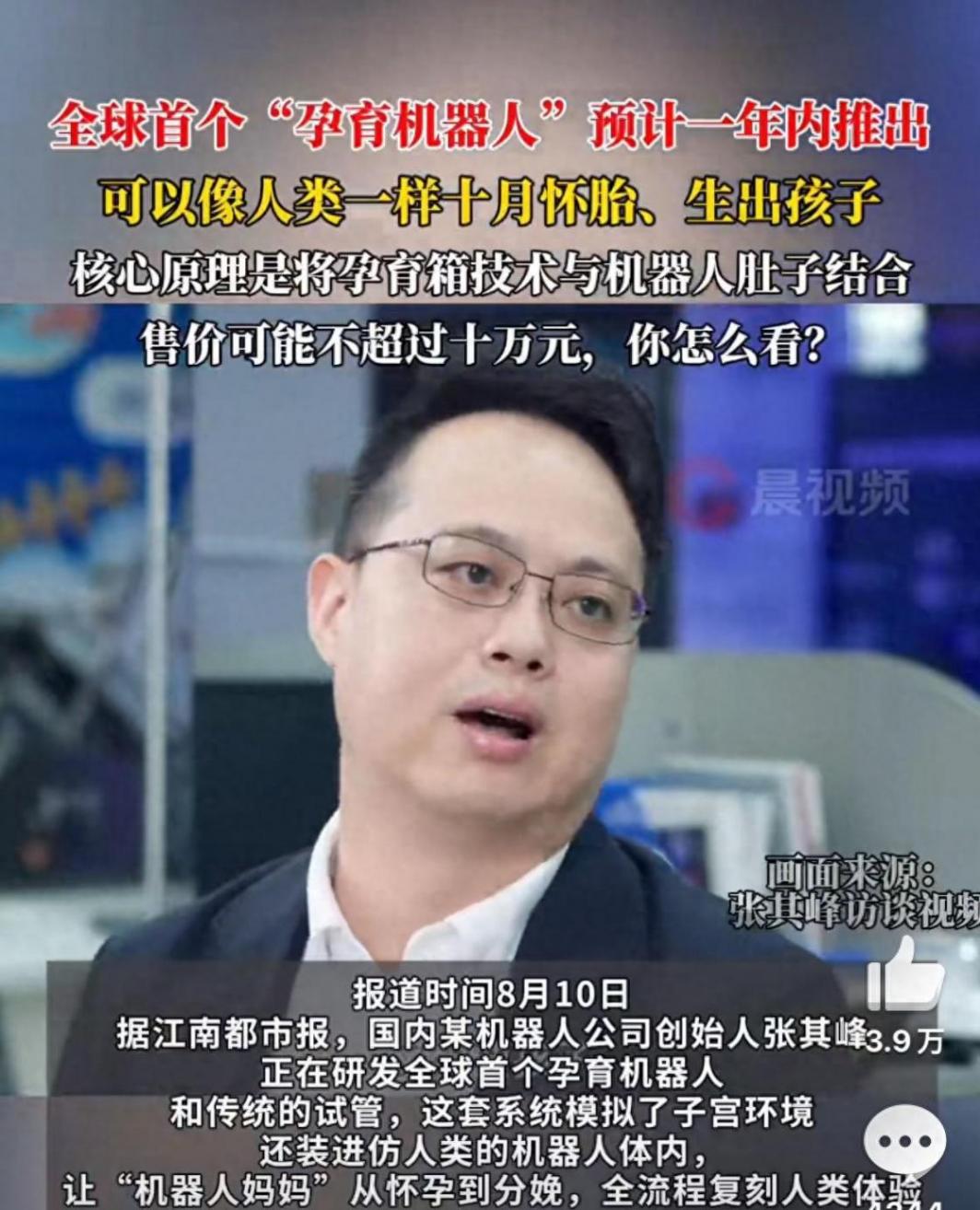 全球首個孕育機器人預計一年內面世的消息,引發了廣泛關注。據公開信息,該設備通過人造子宮模擬人類妊娠環境,覆蓋從胚胎著床到胎兒發育直至分娩的全過程,定價預計不超過10萬元。(8月10日瀟湘晨報)