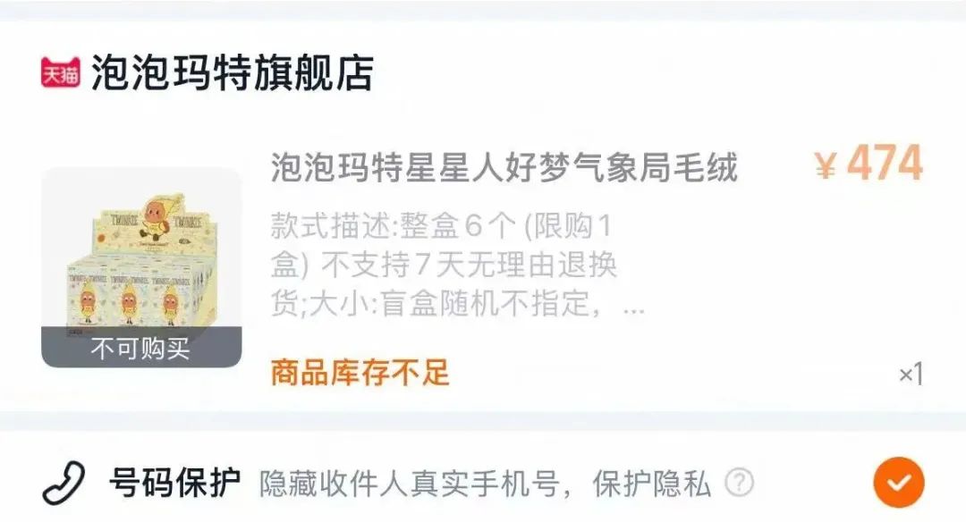 新品上線瞬間,泡泡瑪特官方小程序及各大電商平臺渠道的庫存在數秒內售罄。不少網友也特意卡點蹲守購買,瓶窯網友雨田就是其中之一。“我本來是想端盒(購買一整盒)的,但是就慢了一步,付款失敗了。”