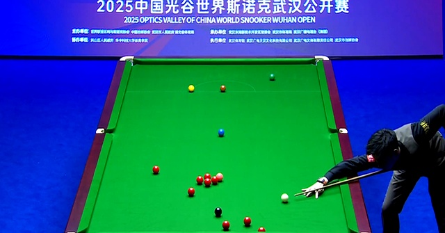 那顆黑球距離袋口不到20厘米,角度也不刁,趙心童卻推得輕了半毫米,球磕袋角彈出,馬奎爾立刻起身,單桿38分清臺。