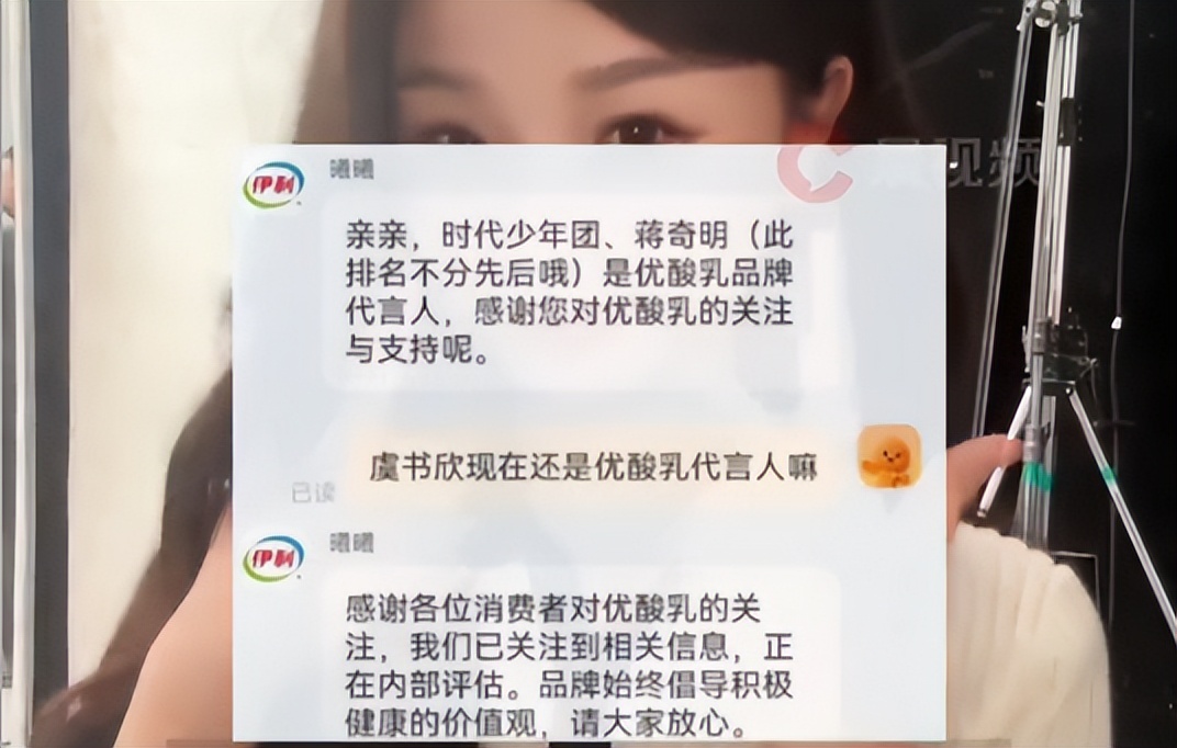 此外,優酸乳官方賬號內已搜索不到虞書欣相關內容,記者詢問了伊利官方客服,對方表示,我們已關注到相關信息,正在內部評估品牌始終倡導積極健康的價值觀,請大家放心。