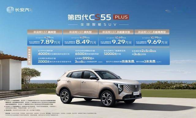 9月25日,長(zhǎng)安汽車正式推出全球車型——第四代CS55PLUS,新車共發(fā)布4款配置,疊加現(xiàn)金優(yōu)惠后售價(jià)7.89萬元起,并有多重購(gòu)車禮遇。