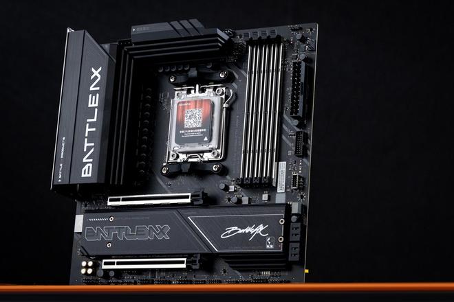 黑化設(shè)計(jì)的 BATTLE-AX B850M-PLUS S WIFI7 V14 搭載新版“黑武士”散熱裝甲,綜合了陽(yáng)極上色、磨砂、拉絲等工藝,整體線條冷厲;COLORFIRE B850M-MEOW WIFI7 V14 則采用暖白色烤漆工藝,以簡(jiǎn)潔橘色裝飾搭配豐富貓貓和貓抓圖案,擴(kuò)大了主題裝機(jī)適配面。