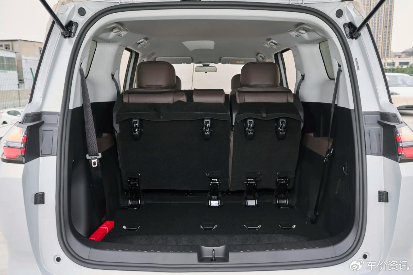 接著儲物空間部分,星光730除了給到車內豐富的人性化儲物空間以外,它的第三排座椅還給到了常規靠背放倒,以及整個座椅向前翻折兩種設計,前者可以形成一個“兒童床”,平時帶著家人出游,小孩玩累了可以躺在上面睡覺休息;后者則給到一個最大1202L的儲物空間,像是嬰兒車、露營裝備這些都能輕松裝下。
