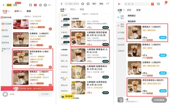 但是,令人疑惑的是打開(kāi)京東、美團(tuán)和淘寶的外賣平臺(tái)卻發(fā)現(xiàn)七鮮咖啡在每個(gè)平臺(tái)是存在很大的價(jià)格差異的,例如京東秒送上門店顯示一杯椰青美式折扣后價(jià)為6.9元、茉莉花香拿鐵7.9元,而美團(tuán)外賣一杯椰青美式為17.8元、茉莉花香拿鐵16.8元,淘寶閃購(gòu)則分別為原價(jià)19.8元折后15.8元、原價(jià)18.8元折后14.8元。