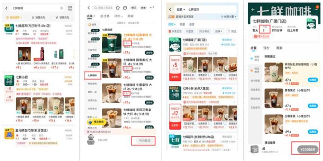 值得注意的是,定位于北京市的美團(tuán)外賣上線門店中已經(jīng)可以陸續(xù)看到七鮮咖啡的銷量,不過(guò)七鮮咖啡是放在了七鮮小廚的附屬欄內(nèi),且店內(nèi)配送起送價(jià)格定在20元起,而淘寶閃購(gòu)似乎處于測(cè)試階段,未上線銷量同時(shí)起送價(jià)格定在200元起送。