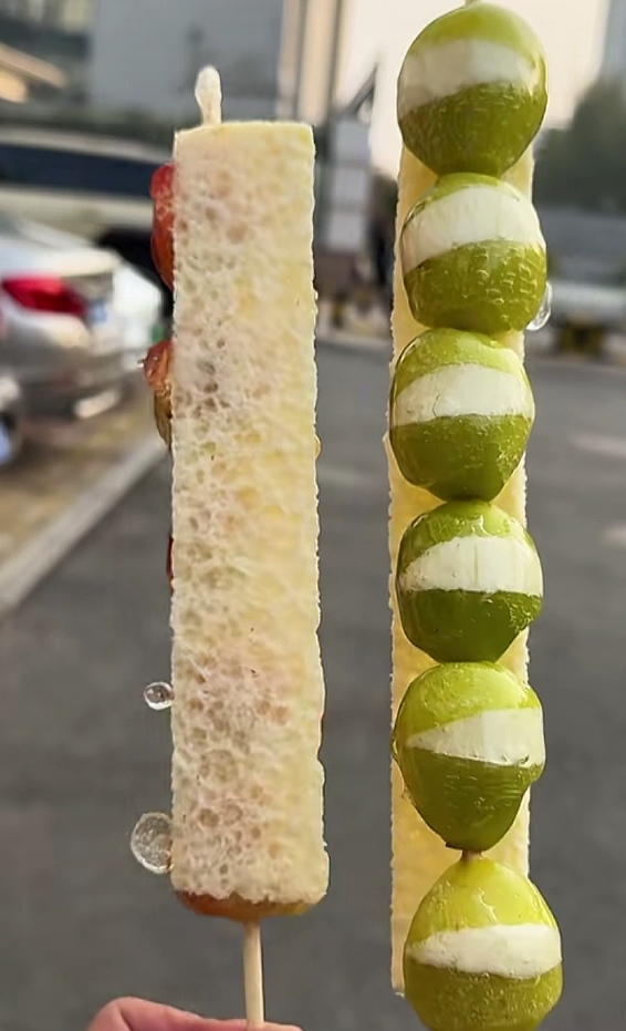 創新組合:將奶皮子與糖葫蘆結合,有的還加入冷萃酸奶、青提、草莓等,口感層次豐富,甜、酸、奶香交織,被形容為“甜蜜炸彈”。