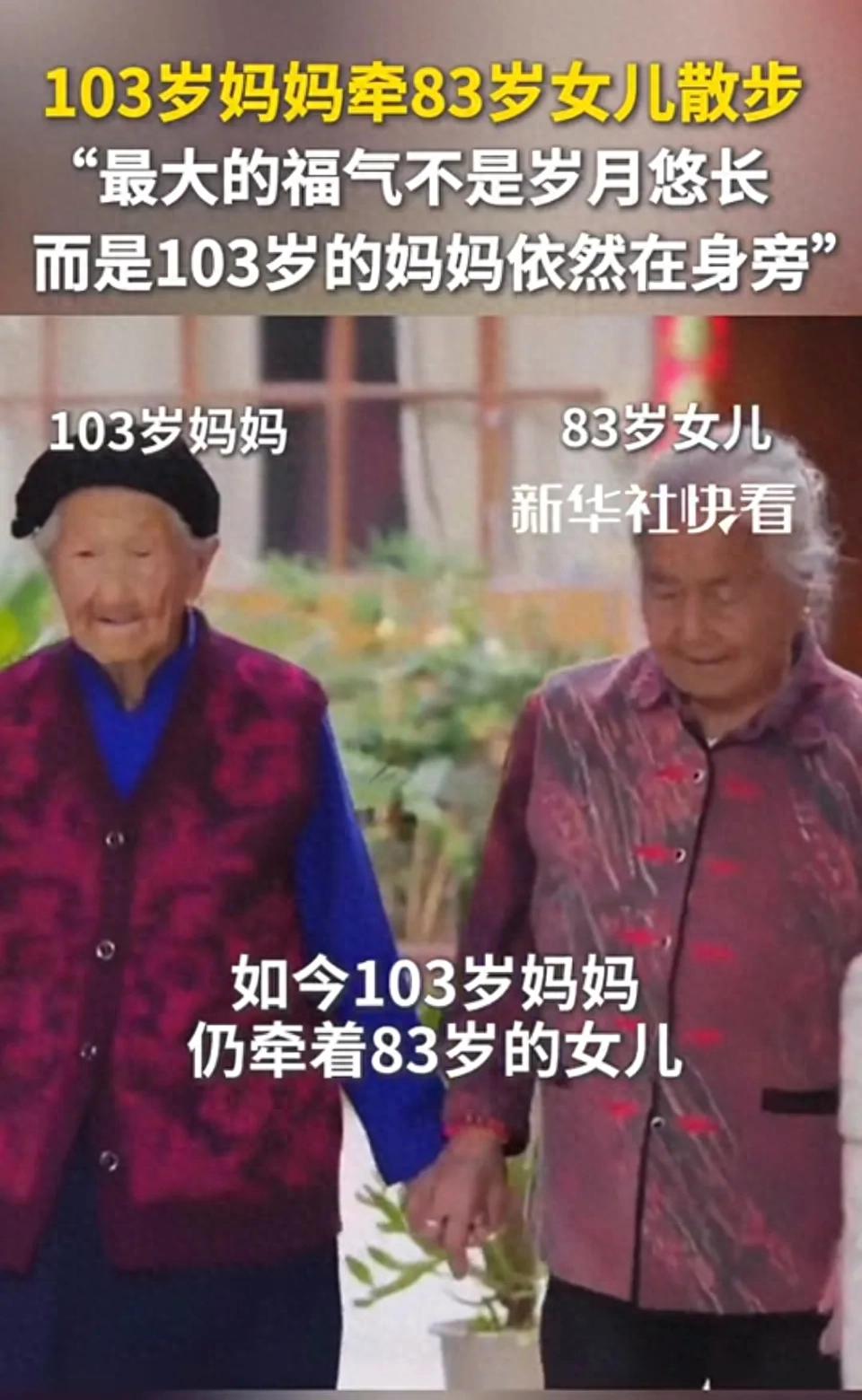 咱普通人總說“歲月悠長是福氣”,但看了這對母女,才明白真正的福氣是啥——是哪怕你已經83歲了,一回頭,103歲的媽媽還在你身邊當你的“靠山”。