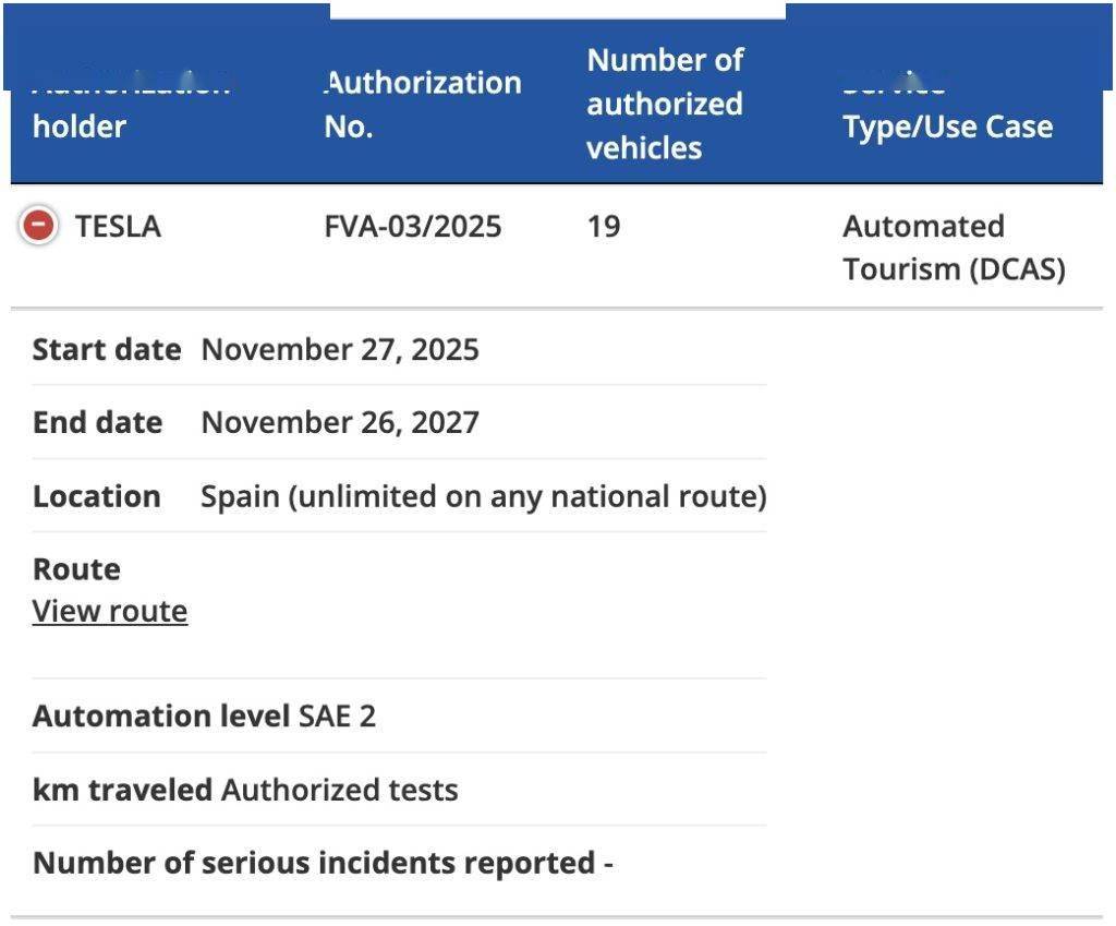 該項目的授權有效期為 2025 年 11 月 27 日至 2027 年 11 月 26 日。DGT 同時明確,特斯拉可在西班牙任何國家級道路開展不限次數的 FSD 測試。鑒于特斯拉目前已進入 ES-AV 計劃的第三階段,車上安全操作員已非強制要求,遠程監控亦被允許。
