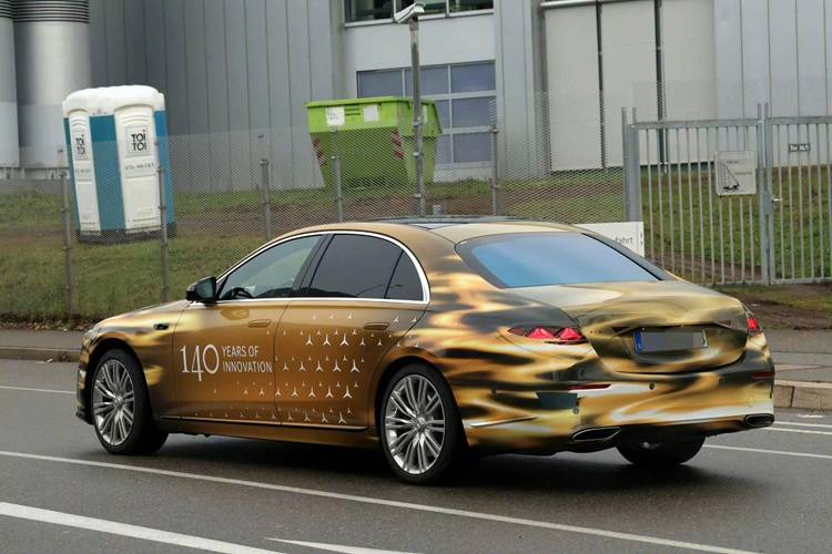 車尾也換上了與奔馳E級類似的三叉星徽尾燈組,另外在照片中能明顯看出在轉彎時后輪也有轉動角度,說明新車將會配備后輪轉向功能。