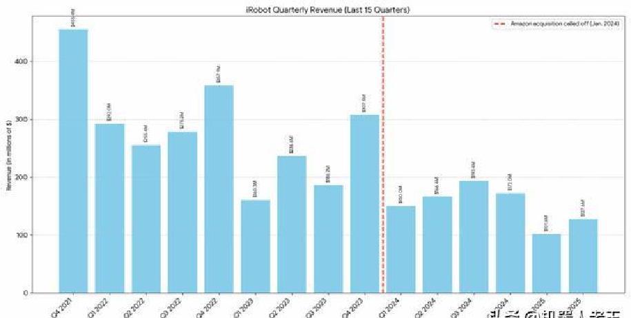 再往前看幾個關鍵的時間點。2025年第二季度,iRobot營收只剩1.276億美元,同比下降了23.3%;對比之下,2022年同期營收還超過3億美元。到2025年9月,公司手里只剩下2480萬美元現金,且其中一部分來自亞馬遜終止收購時的補償。更糟的是,10月曾有一家潛在買家看過賬后撤回出價,理由是出價遠低于公司此前幾個月的股價水平。