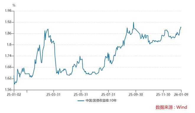 回顧2025年的債市走向,wind數(shù)據(jù)顯示,10年期國(guó)債收益率自年初1.6%的低位經(jīng)歷了一輪極速走高,3月觸及階段高點(diǎn);二季度自高位回落,在低位持續(xù)震蕩,市場(chǎng)情緒趨于謹(jǐn)慎,配置力量與政策預(yù)期相互博弈;下半年自7月起重拾升勢(shì),9月沖高觸及1.92%左右,經(jīng)濟(jì)修復(fù)預(yù)期升溫、資金面收斂及供給壓力共同推動(dòng)利率中樞上移;四季度自高點(diǎn)小幅回調(diào)后維持高位震蕩,年末交投趨于平穩(wěn)。